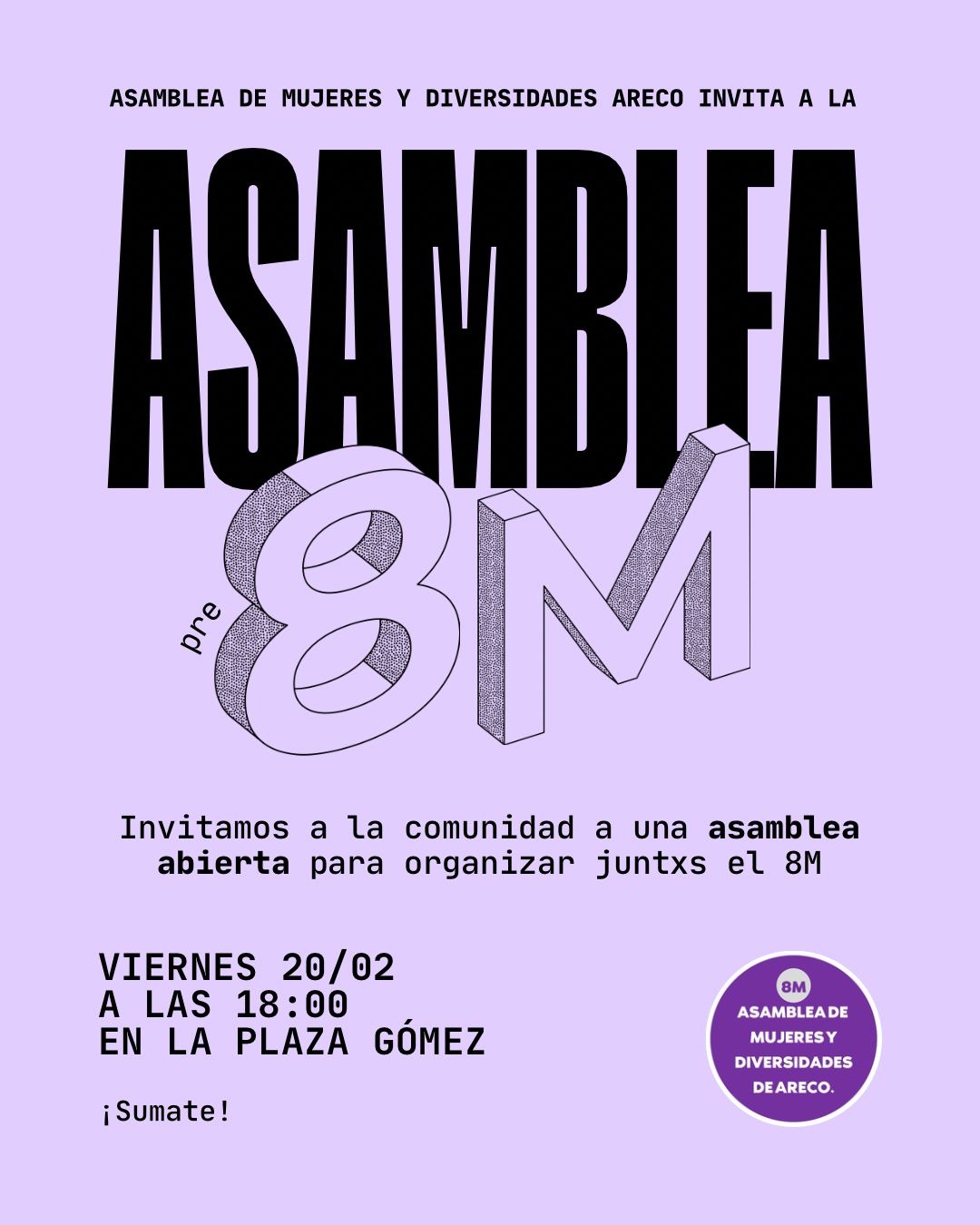 La Asamblea de Mujeres y Diversidades de San Antonio de Areco convocó a una asamblea abierta para organizar el 8M en la ciudad. El encuentro se realizará este viernes a las 18:00 en Plaza Gómez y está dirigido a organizaciones, asociaciones, movimientos locales y a toda persona que quiera sumarse a la planificación colectiva de la jornada.