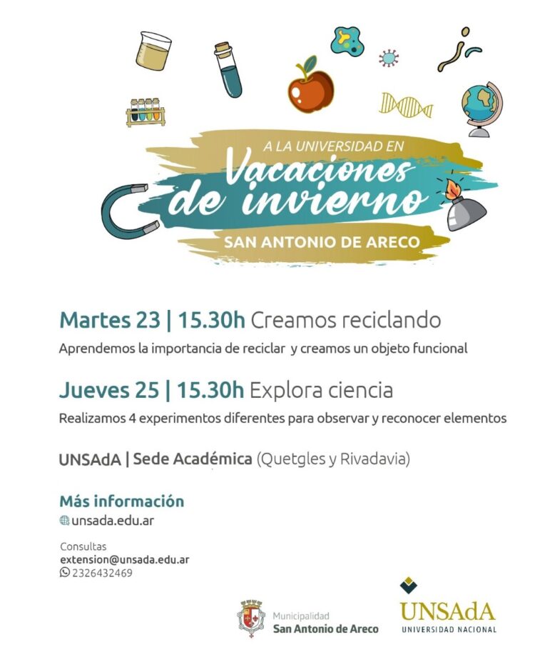 En su sede de Quetgles y Rivadavia, la UNSAdA anuncia actividades para estas vacaciones. Comienzan mañana martes 23, desde las 15.30 horas “Creamos reciclando“, sobre la importancia de reciclar y crear un objeto funcional.