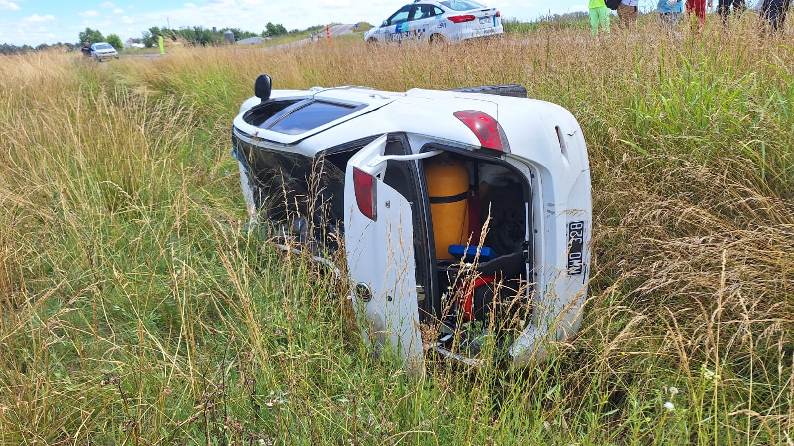 Se produjo este miércoles un accidente entre dos vehículos sobre el km 115 de la ex Ruta Nacional N°8. En circunstancias que se encuentran bajo investigación, se “rozaron” una camioneta Saveiro VW y un Fiat Siena, con posterior despiste y vuelco para el automóvil.