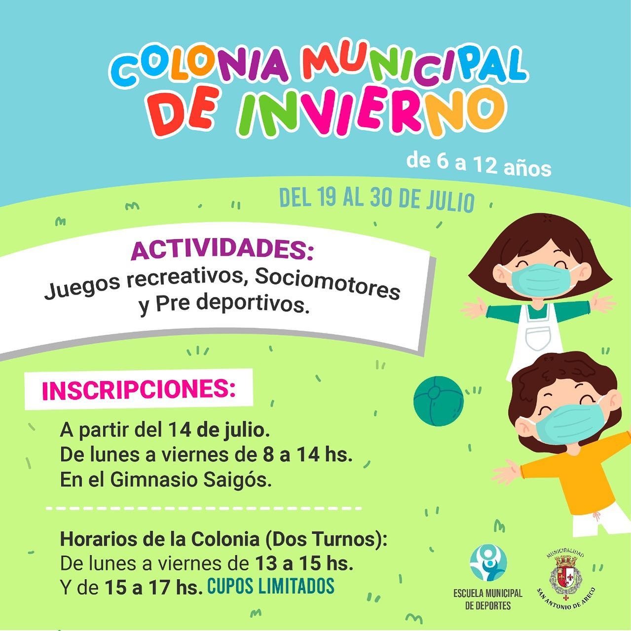 ¡Arranca la Colonia Municipal de Invierno! El municipio de San Antonio de Areco dio a conocer la propuesta para este receso invernal con juegos recreativos, sociomotores y pre deportivos.