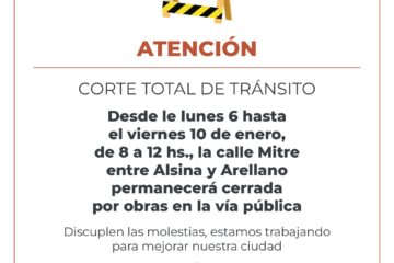 A partir de este lunes 6 de enero habrá dos importantes cortes de tránsito en nuestra ciudad. Uno en pleno