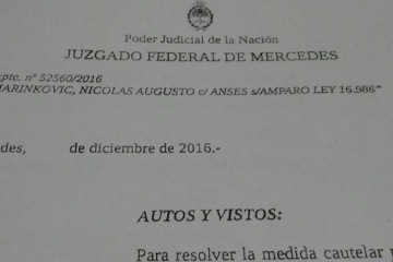 La medida la dispuso el Juzgado Federal de la ciudad de Mercedes, según el expediente n° 52560/2016 “MARINKOVIC NICOLAS AUGUSTO c/