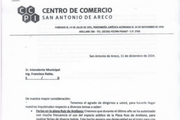 Se conoció esta mañana la carta enviada al intendente Francisco Ratto y Concejo Deliberante por parte del Centro de Comercio