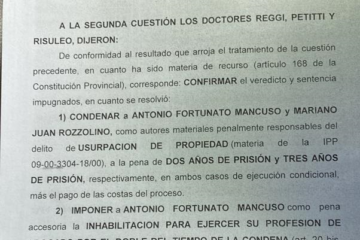 Punto final para la incertidumbre de los vecinos adjudicatarios. En un fallo conocido esta tarde, los doctores Oscar Horacio Reggi,
