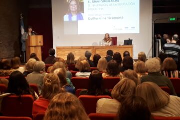 Con un público integrado por autoridades locales, docentes y vecinos interesados, Guillermina Tiramonti presentó su libro “El gran simulacro. El