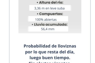 Último informe oficial La Municipalidad de San Antonio de Areco informó que la altura del río alcanzó los 3,36 metros,