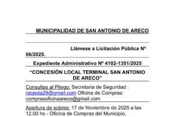 Expediente Administrativo Nº 4102-1351/2025 La Municipalidad de San Antonio de Areco llama a Licitación Pública Nº 06/2025, correspondiente al otorgamiento