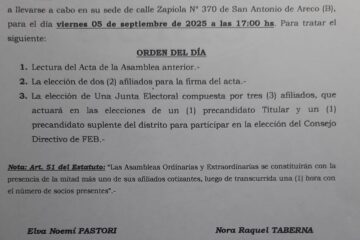 Convocatoria a Asamblea Extraordinaria del Centro de Educadores de San Antonio de Areco