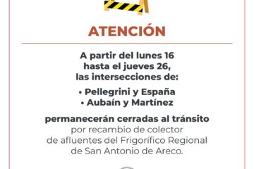 Por recambio del colector de afluentes del Frigorífico Regional San Antonio, el Municipio anunció que desde este lunes 16 hasta