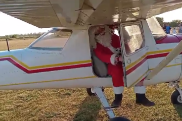 La invitación decía: “¡Papa Noel llega volando!”. El lugar: el Aeroclub de San Antonio de Areco. Y así fue. Ante