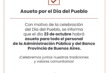 23 de octubre: asueto para personal municipal, Banco Provincia y escuelas del distrito