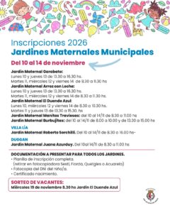 Comienzan las inscripciones 2026 para los Jardines Maternales Municipales