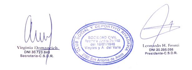 El club social y deportivo Rivadavia convoca a asamblea general ordinaria
