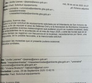 Mientras el municipio esperaba respuestas por mail, fueron los Bomberos Voluntarios y el concejal Ramiro Ramallo quienes lograron destrabar el envío. El equipamiento -clave para prevenir y responder ante inundaciones- llegó finalmente al cuartel de Bomberos, y no al municipio. Durante la visita, la funcionaria provincial escuchó a las vecinas afectadas, que desde hace meses sostienen un trabajo comunitario para lograr protocolos claros y accesibles, ante la falta de respuestas oficiales.