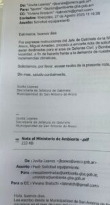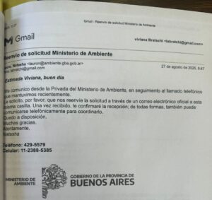 El Ministerio de Ambiente bonaerense respondió recién el 27 de agosto, pidiendo que el pedido se realizara desde una casilla institucional.