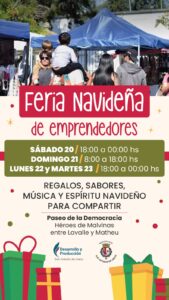 Durante la feria, el público podrá recorrer distintos stands con regalos, propuestas gastronómicas, música y actividades, en un ambiente pensado para celebrar el espíritu navideño y fomentar el consumo local.