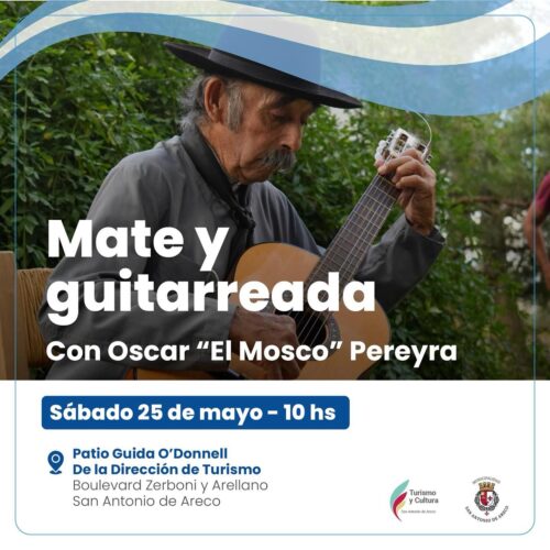 También para mañana sábado, pero más temprano, la invitación es un encuentro de Mate y Guitarreada con Oscar “El Mosco” Pereyra a las 10 horas en el Patio Guida O’Donnell de la Dirección de Turismo .