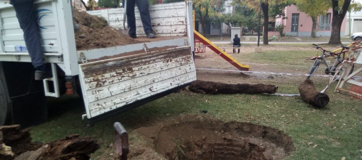 Gracias a la advertencia de un vecino, se logró tapar un profundo pozo en la Plaza Belgrano