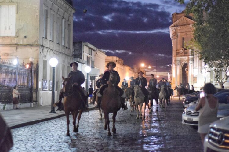 Los paisanos sorprendieron a los turistas la tarde/noche de este sábado, cuando dieron un paseo alrededor de la Plaza Arellano. En homenaje al 138° aniversario del nacimiento de Ricardo Güiraldes, los gauchos se habían juntado – más de ochenta –  en el Mástil del Bicentenario y con abanderados, recorrieron el empedrado rodeados por vecinos y allegados.