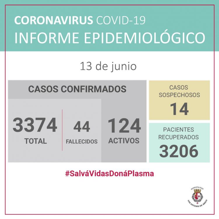 Con las cifras publicadas, nuestra ciudad suma 3374 casos desde el inicio de la pandemia, con 124 activos y 3206 pacientes recuperados.