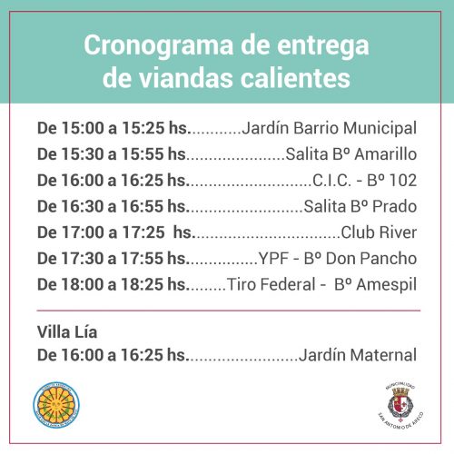 🥣 Continuamos con el programa de ayuda alimentaria en conjunto con el Ejercito Argentino. Los puntos de encuentro serán los mismos en Areco y en Villa Lía se entregará en el Jardín maternal a las 16hs.