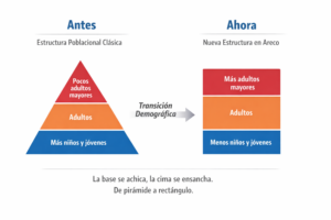 Si la población pudiera dibujarse como una figura geométrica, durante décadas la forma fue clara: una pirámide. Base amplia, muchos niños y jóvenes y cima estrecha, pocos adultos mayores.