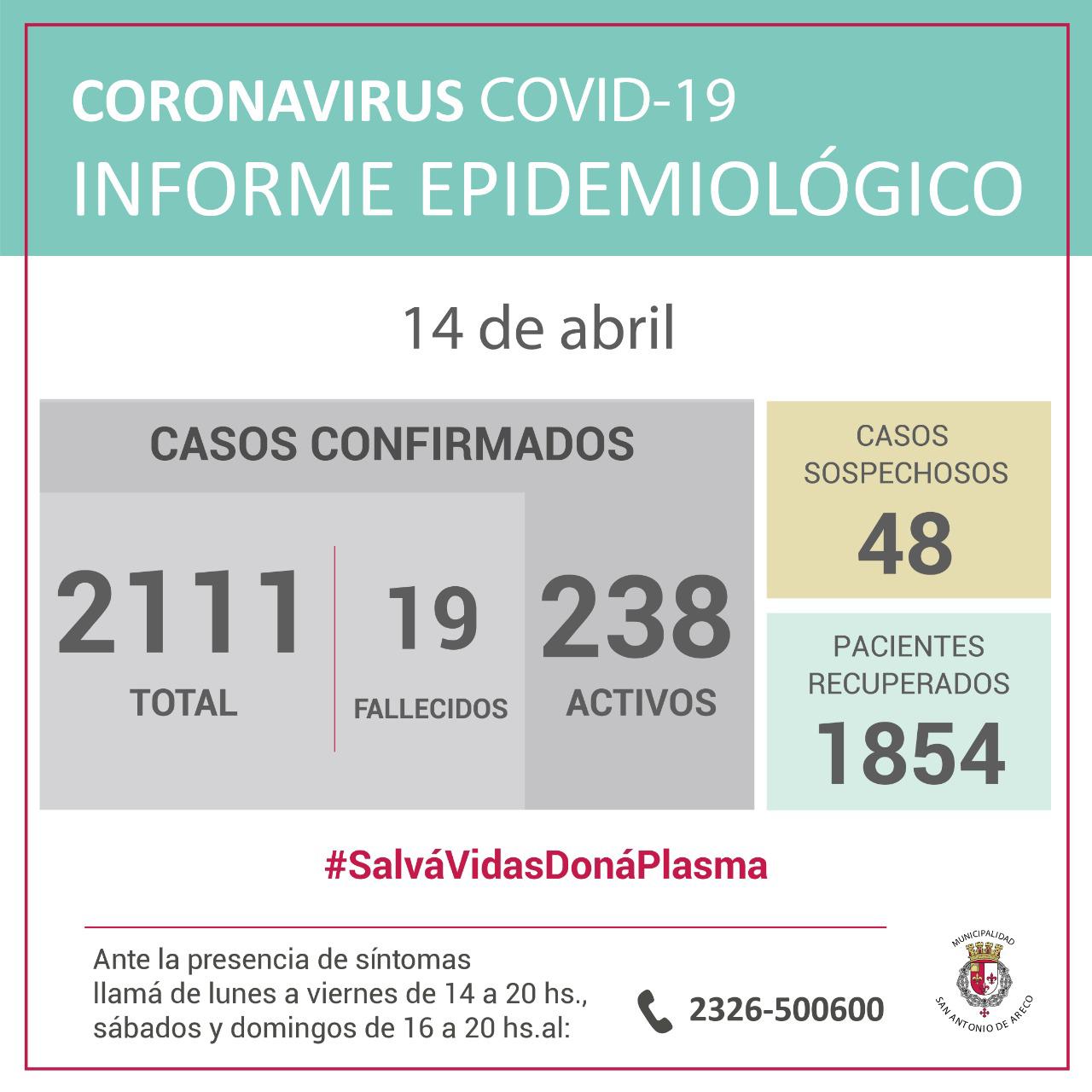 En un nuevo informe epidemiológico, San Antonio de Areco lamentablemente llega a otro récord de casos. Hay un total de 238 activos al día de la fecha.
