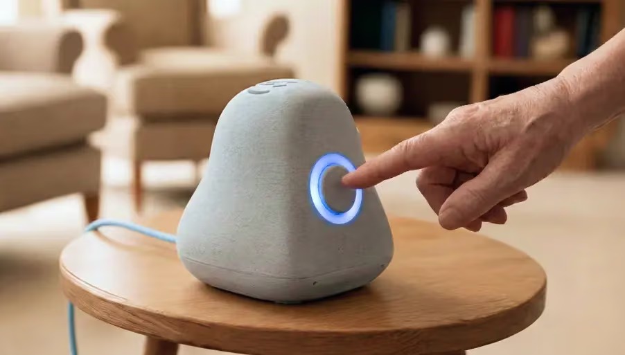 ATO es un dispositivo similar a un asistente de voz que funciona sin pantalla y permite interactuar de manera simple a través de comandos hablados. De esta manera, una persona mayor puede enviar mensajes, recibir respuestas o acceder a información sin necesidad de manipular un celular ni utilizar aplicaciones.