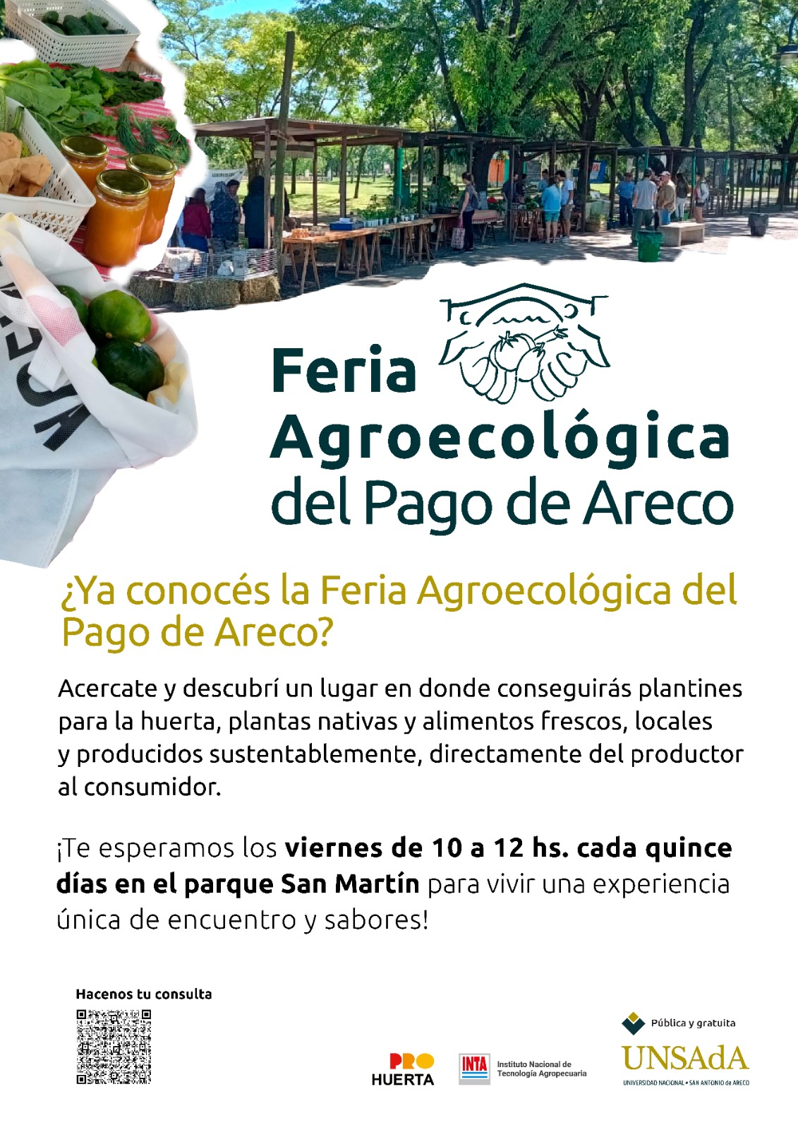 Este viernes 15 de marzo se realizará una nueva edición de la Feria Agroecológica, como siempre en el Parque San Martín de 10 a 12 horas, donde pueden conseguirse plantines para la huerta, alimentos frescos locales y producidos en forma sustentable del productor al consumidor.