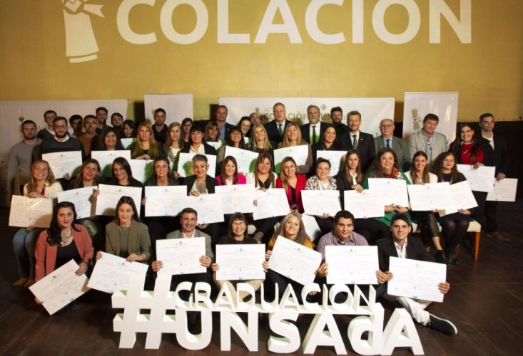 Ese mismo día, y cargado de mucha emoción y energía, la UNSAdA tuvo su segundo acto de colación y entrega de diplomas a 50 estudiantes que se graduaron durante este año en varias carreras que la universidad dicta en diferentes localidades de la región.